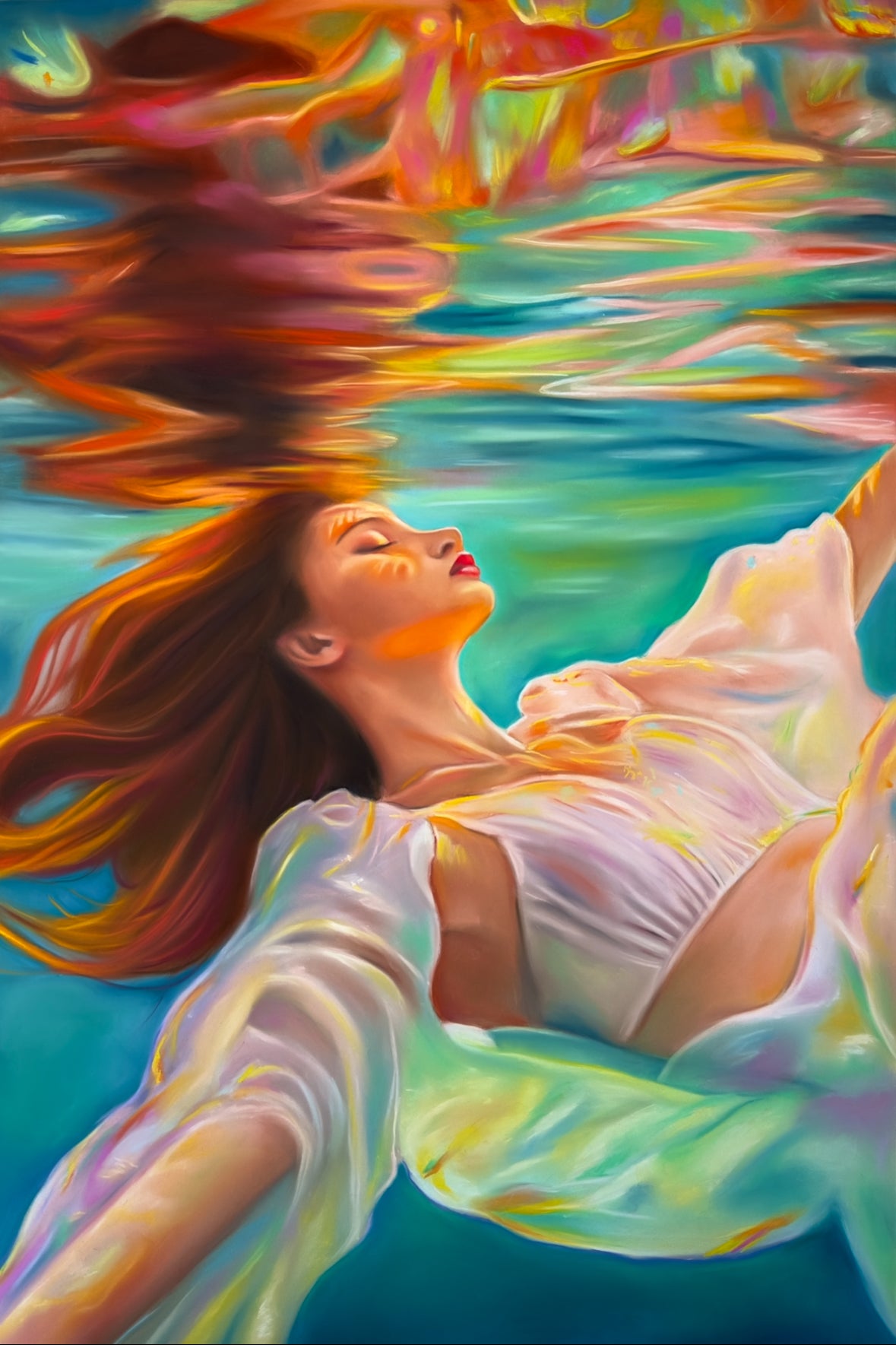 This piece is about finding peace, safety, and strength in letting go. Like floating underwater, gently held by the current. It's about surrounding, and discovering a Sanctuary within yourself... a place to simply be.